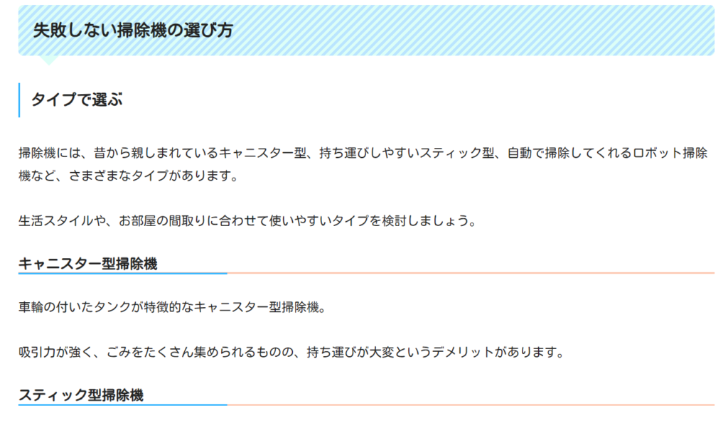 記事に見出しを付けることで、「なにを解説した文章なのか」「重要なことはなにか」が、一目で分かります。