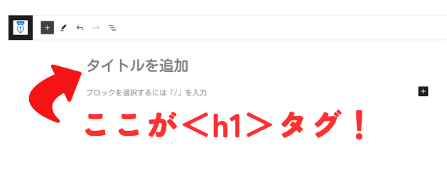 実は、Wordpressのブログでは、「新規投稿を追加」ボタンを押すと、ページ上部に表示される「タイトルを追加」の部分が、<h1>タグになっています